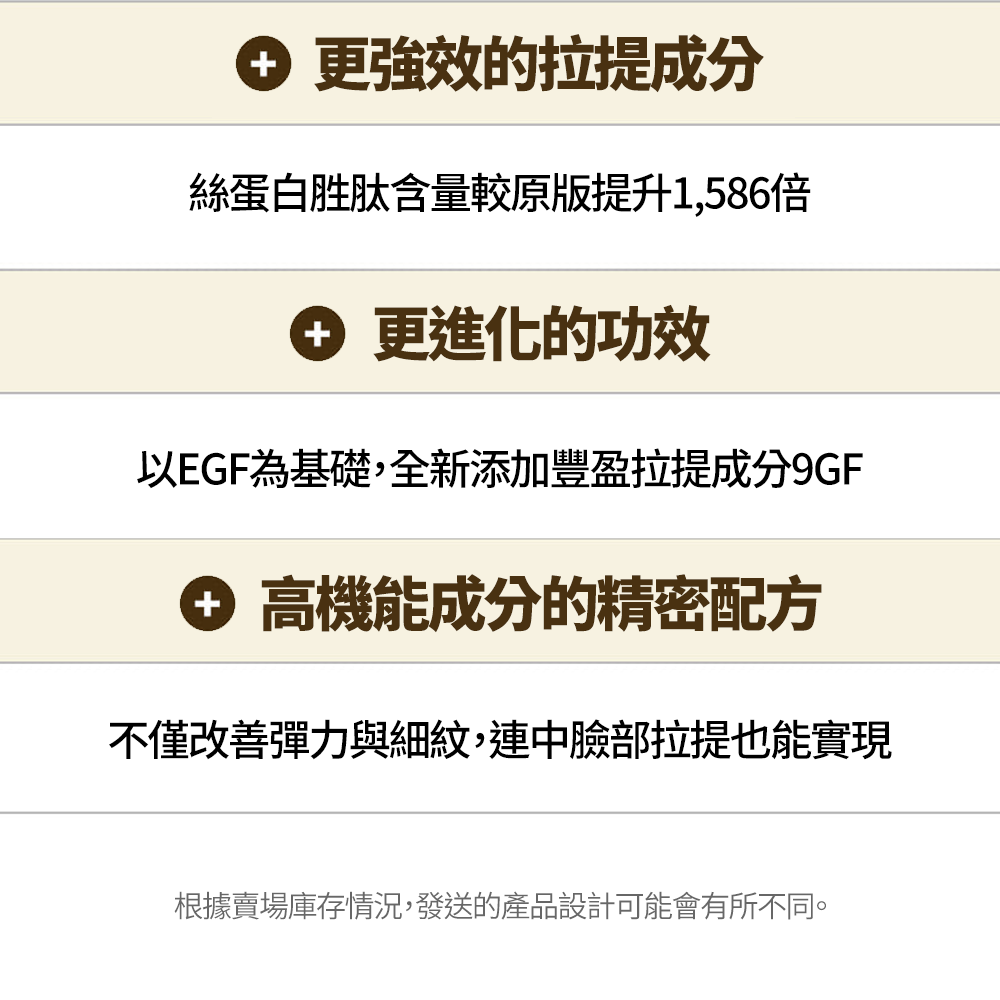 💧深層皺紋護理:金絲胜肽+ 13種肽複合物。